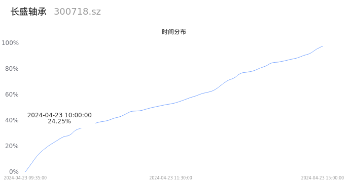 300718长盛轴承2024年04月23日成交2.61万手,成交金额4168.67万元,相较昨日缩量655手,换手率1.37%,成交清淡。