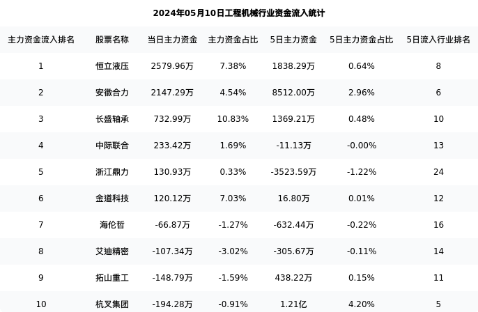 从主力资金流向来看,工程机械行业今日主力资金流入16.74亿元,在所有申万二级行业中排名:45/131。
