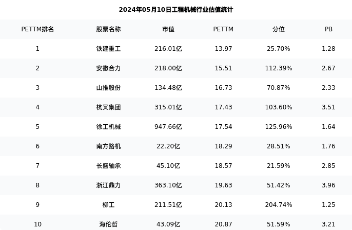 长盛轴承最新报告期数据为一季度,下表汇总了工程机械行业内市值靠前的公司一季度主要经营数据