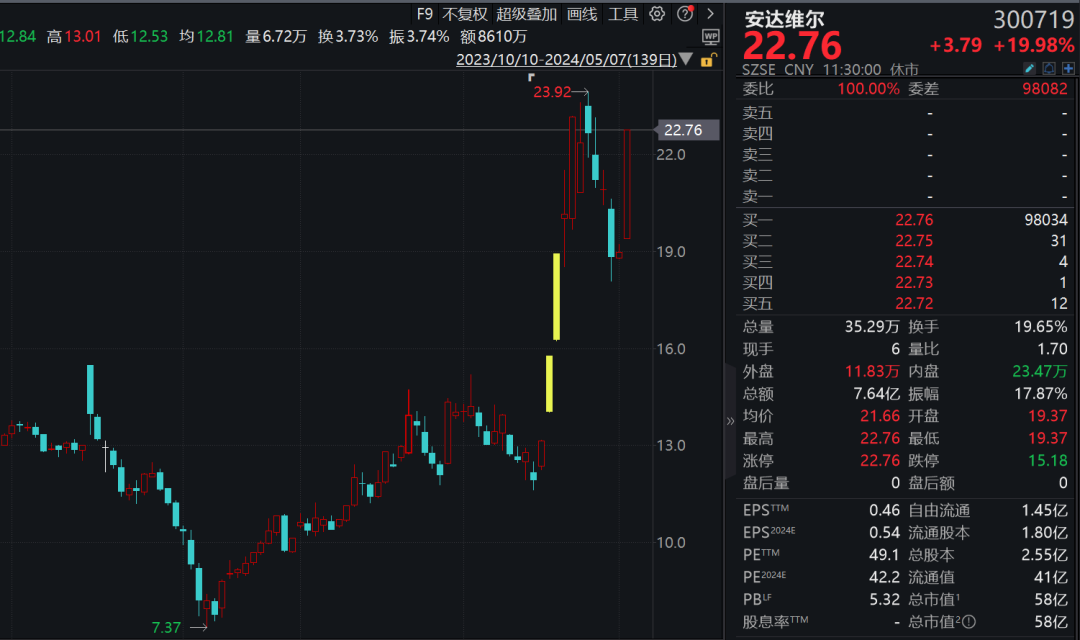 大飞机概念早间高开高走,板块指数盘中放量大涨近3%,逼近年内最高点。安达维尔高开后仅7分钟就20%涨停,航新科技亦直线拉升20cm涨停,兴业股份、豪能股份、立航科技等也涨停或涨超10%。