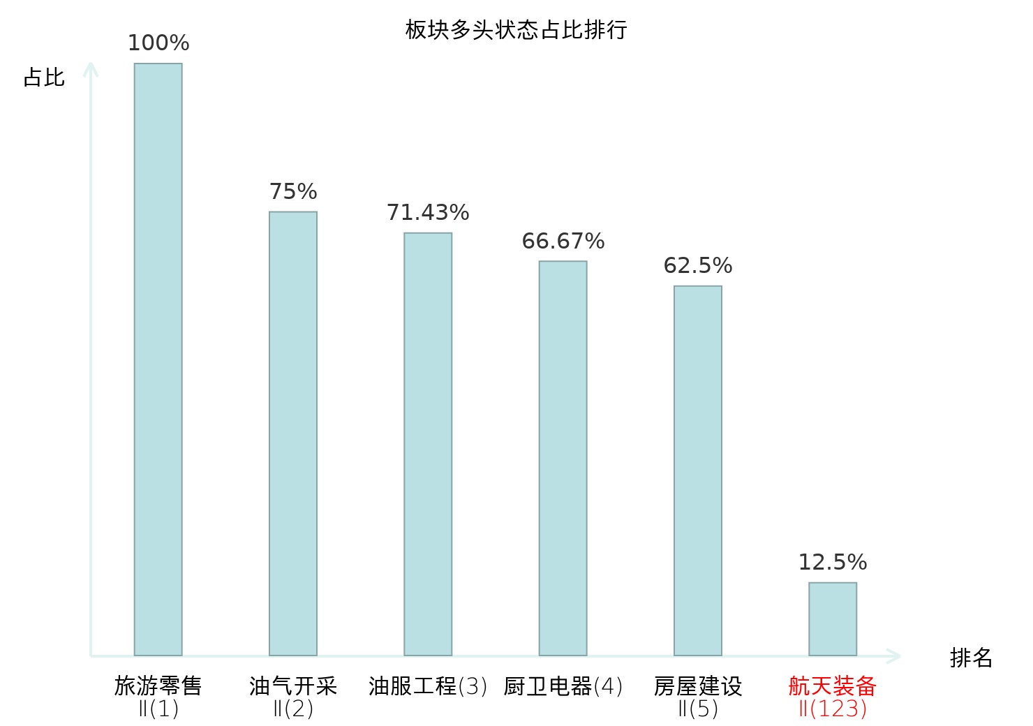 全市场所有行业板块中主力多头状态占比排名中,旅游零售Ⅱ板块位居第一。焦炭Ⅱ板块名次提升最快,较昨日上升58位。
