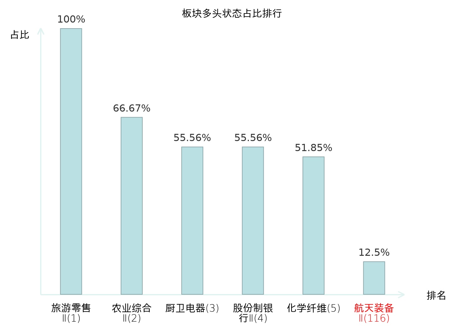 全市场所有行业板块中主力多头状态占比排名中,旅游零售Ⅱ板块位居第一。国有大型银行Ⅱ板块名次提升最快,较昨日上升103位。