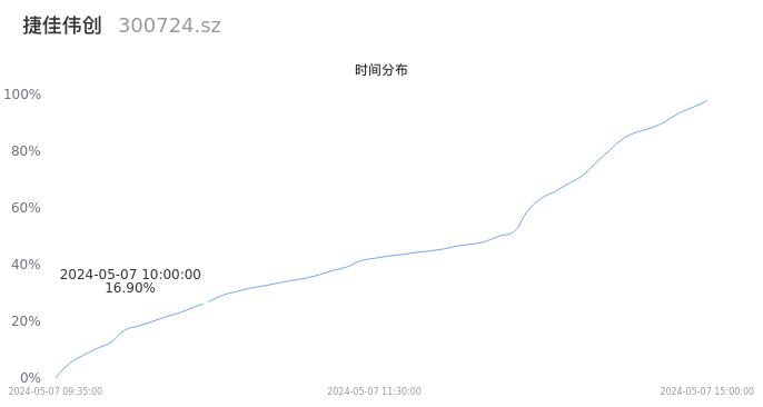 300724捷佳伟创2024年05月07日成交9.49万手,成交金额6.55亿元,相较昨日放量676手,换手率3.46%,成交清淡。