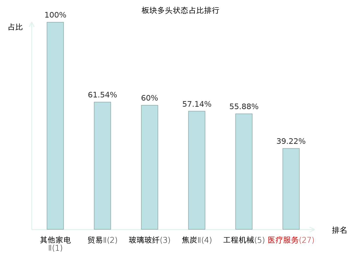 全市场所有行业板块中主力多头状态占比排名中,其他家电Ⅱ板块位居第一。航海装备Ⅱ板块名次提升最快,较昨日上升98位。