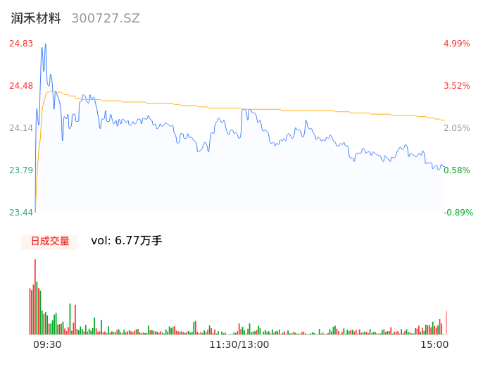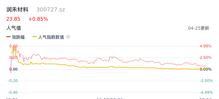 04月25日,润禾材料收报23.85,股价涨幅0.85%,成交金额1.64亿元,换手率5.94%。
