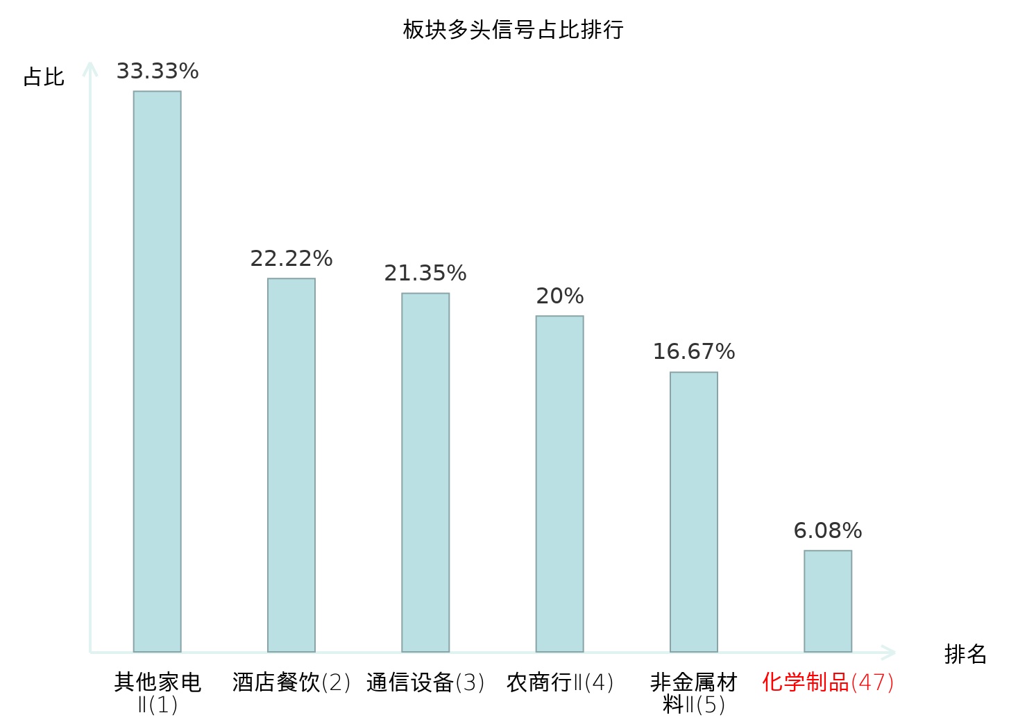 全市场所有行业板块中主力多头信号占比排名中,其他家电Ⅱ板块位居第一。其他家电Ⅱ板块名次提升最快,较昨日上升128位。