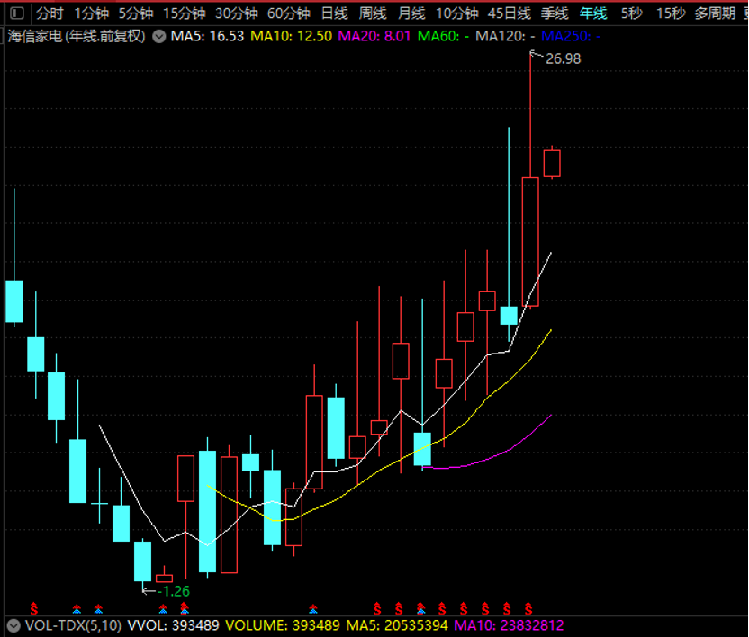 海信家电是近年来的超级大牛股,且表现抗跌。该股2023年逆市大涨超58%,今年年初以来再度大涨超7%。