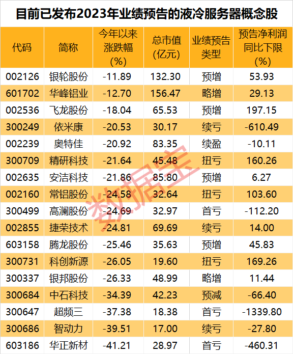 目前18只概念股已经发布2023年业绩预告,其中10股业绩预喜,科创新源、精研科技、常铝股份业绩预计扭亏,飞龙股份、银轮股份的业绩同比预计增幅下限较高,分别为197.15%和53.93%。