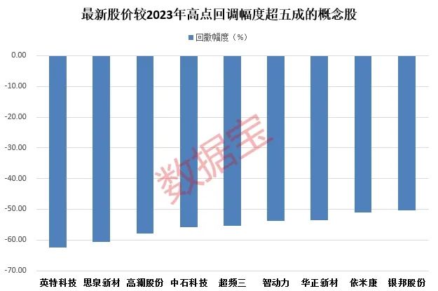 以最新股价较2023年高点以来的回撤幅度来看,液冷服务器概念股平均回调43.22%,英特科技、思泉新材回调幅度较大,分别为62.37%和60.67%。
