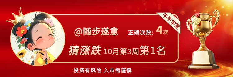 2、大家期待的【猜涨跌】活动已上线,在圈子内点击对话框上方【猜涨跌】了解详情!本周冠军:阿策和随步遂意并列;
