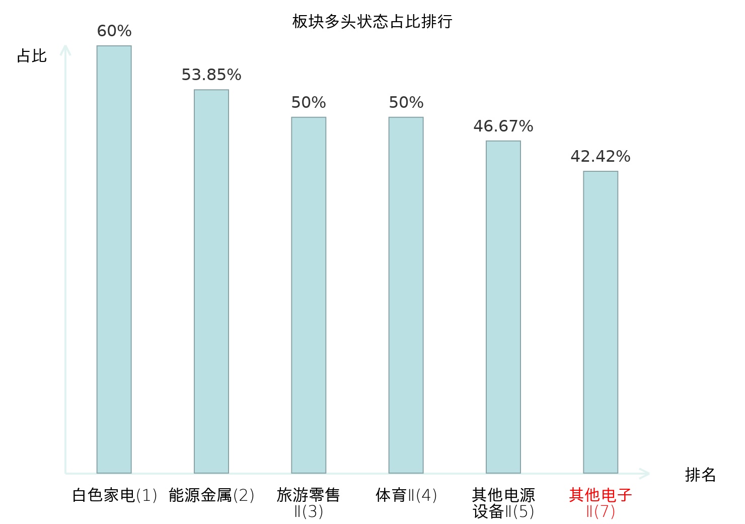 从主力宝信号数据分析,百邦科技所属的其他电子Ⅱ板块中共14只股票处于主力多头状态,主力多头状态占比在全行业中排名第7位,较昨日上升1位。较高的排名表明主力对于该板块整体看多意愿较强;此次排名小幅上升可能反映了主力对该板块态度的积极调整。全市场所有行业板块中主力多头状态占比排名中,白色家电板块位居第一;体育Ⅱ板块名次提升最快,较昨日上升127位。这些变动揭示了不同行业间主力资金配置倾向的变化,为投资者评估板块相对强度及潜在关注方向提供了客观依据。