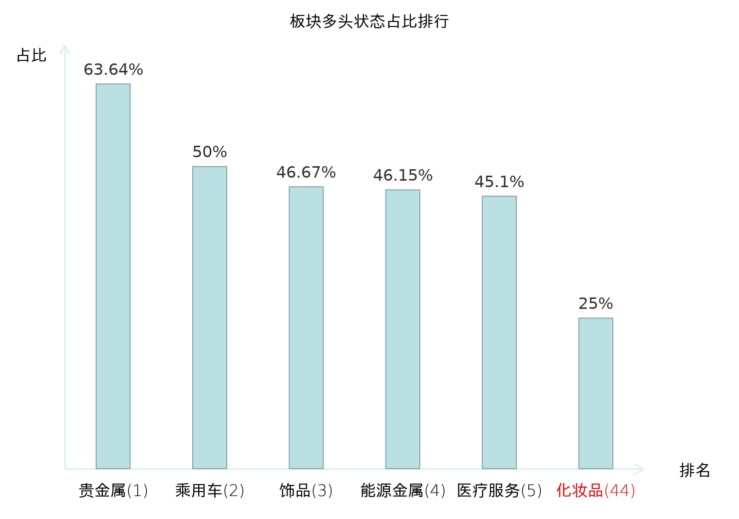 从主力宝信号数据分析,水羊股份所属的化妆品板块中共4只股票处于主力多头状态,主力多头状态占比在全行业中排名第44位,较昨日下降1位。排名的下降可能反映了主力对化妆品板块态度的轻微调整。全市场所有行业板块中,贵金属板块的主力多头状态占比位居第一;电机Ⅱ板块名次提升最快,较昨日上升61位。这些变化揭示了不同行业间主力资金的最新动向,为投资者提供了重要的市场参考信息。