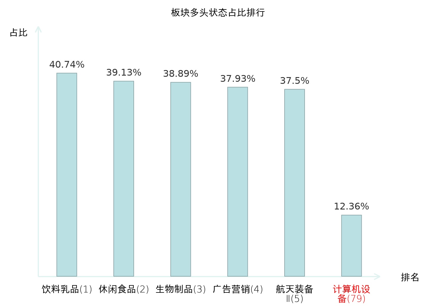 全市场所有行业板块中主力多头状态占比排名中,饮料乳品板块位居第一。国有大型银行Ⅱ板块名次提升最快,较昨日上升71位。
