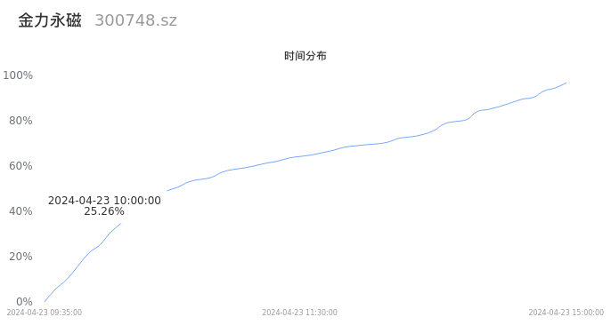 300748金力永磁2024年04月23日成交14.52万手,成交金额2.08亿元,相较昨日放量2.69万手,换手率1.28%,成交清淡。