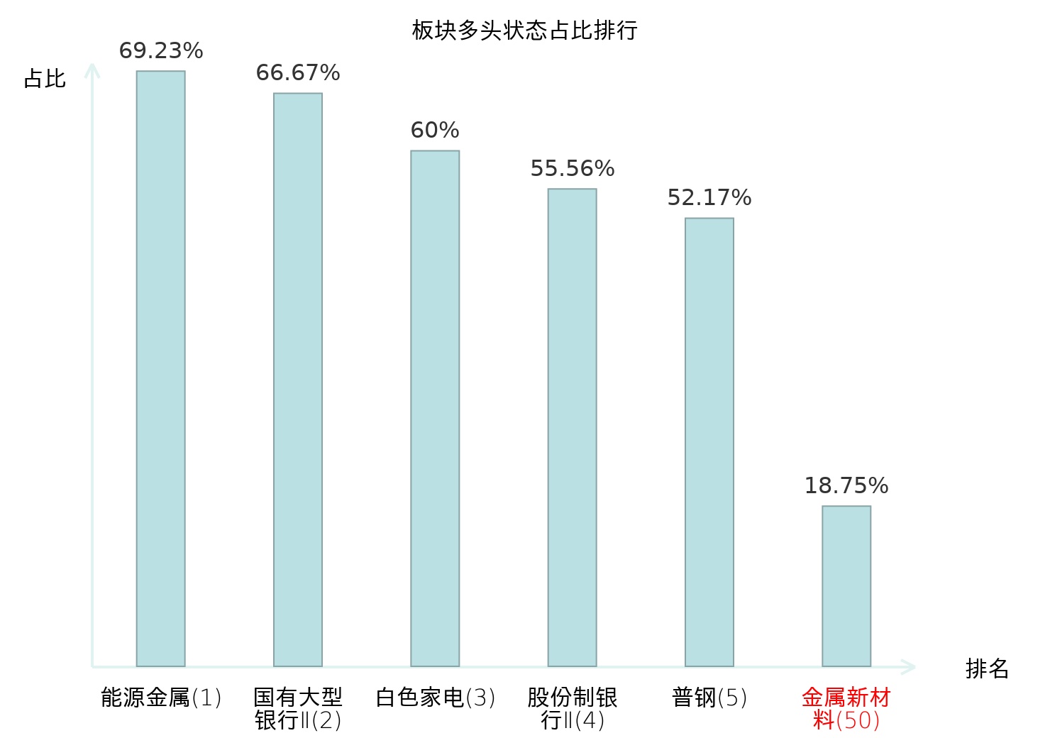 从主力宝信号数据分析,金力永磁所属的金属新材料板块中共6只股票处于主力多头状态,主力多头状态占比在全行业中排名第50位,较昨日上升25位;排名上升表明主力对于该板块整体看多意愿增强,此次跃升幅度较大,反映主力态度出现明显积极调整。全市场所有行业板块中主力多头状态占比排名中,能源金属板块位居第一;贸易Ⅱ板块名次提升最快,较昨日上升69位;这些变动揭示了主力资金在不同行业间的配置倾向变化,为投资者评估板块相对强度及潜在趋势延续性提供了客观依据。