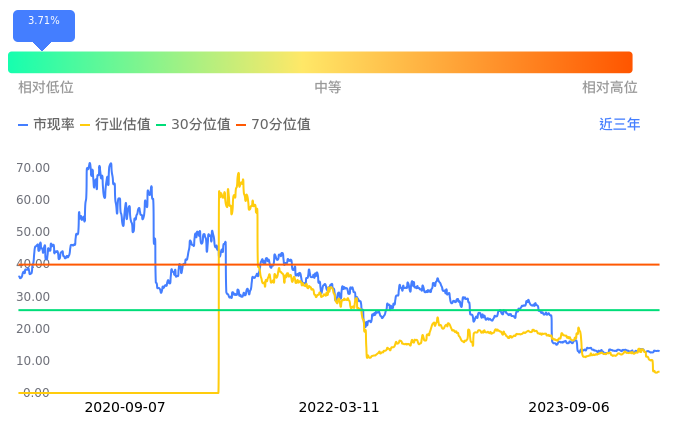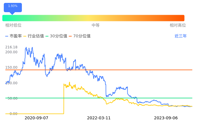 2023年09月07日,宁德时代下跌3.37%收于226.51,今日成交金额44.05亿元。下文将从市盈率PETTM、市净率PB、市现率3个角度去分析公司估值情况。