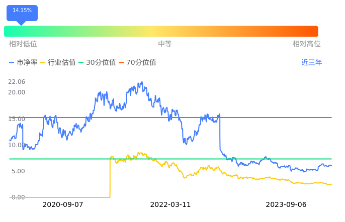 宁德时代当前市净率PB为5.85,在所属的电池中,市净率PB排84,前五名分别为骆驼股份市净率1.07、道氏技术市净率1.15、万润新能市净率1.22、帕瓦股份市净率1.26、嘉元科技市净率1.29。宁德时代当前市净率PB为5.85,超过近3年14.15%的历史数据。