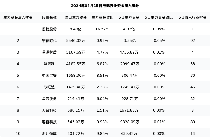 下表为今日行业内流入前10股票的信息