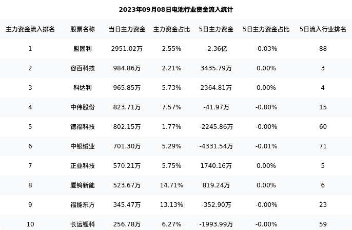 从主力资金流向来看,电池行业今日主力资金流入46.01亿元,在所有申万二级行业中排名:75/131。