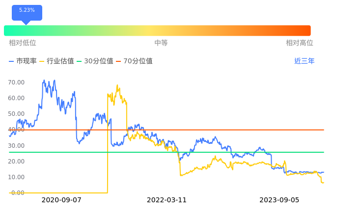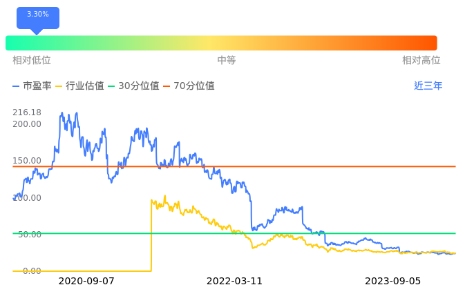 2023年09月05日,宁德时代下跌0.35%收于236.82,今日成交金额27.52亿元。下文将从市盈率PETTM、市净率PB、市现率3个角度去分析公司估值情况。