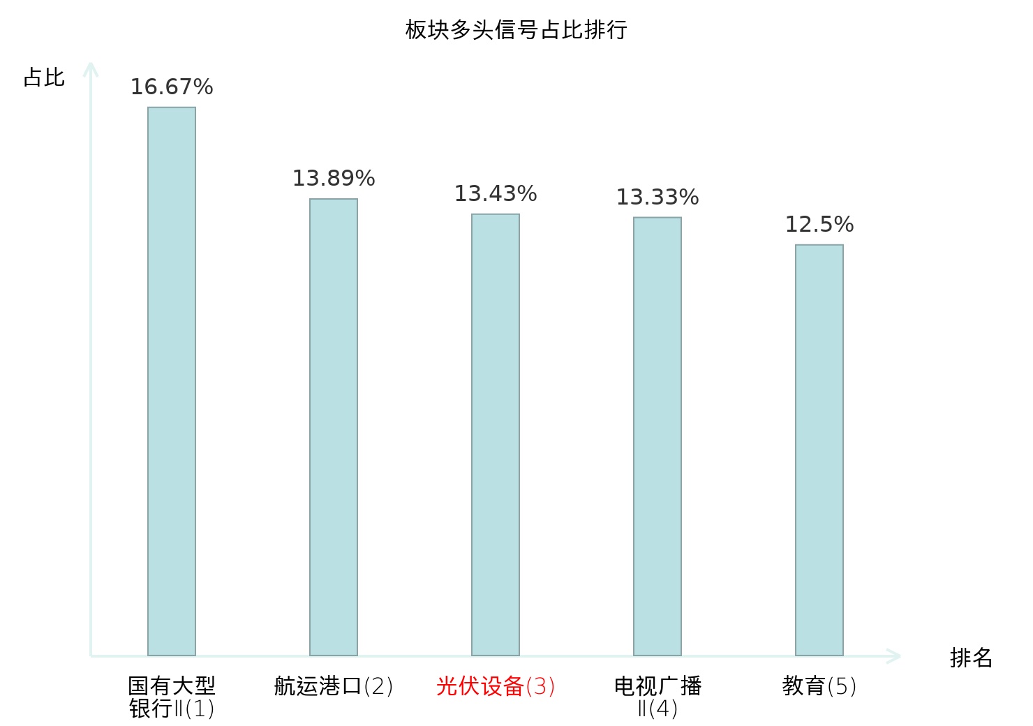 全市场所有行业板块中主力多头信号占比排名中,国有大型银行Ⅱ板块位居第一。国有大型银行Ⅱ板块名次提升最快,较昨日上升124位。