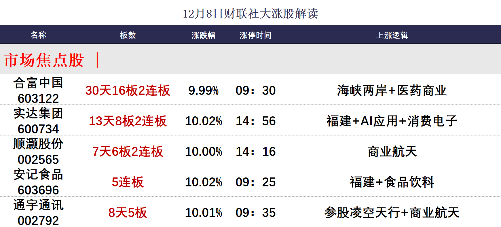 连板晋级率降至54.54%,但高位股接力情绪继续维持高位,海峡两岸概念人气龙合富中国走出多波加强,今日缩量实现连板晋级,走出30天16板,最高标安记食品一字涨停晋级5连板,令福建本地股再度加强,板块内20余只成分股涨停,其中午后厦门港务等多只厦门本地股以及永辉超市等低位股展开凌厉补涨行情。而在算力硬件股强者恒强带动下,继存储芯片概念回暖后,机器人概念午后表现也明显转强,可见算力硬件股在容量抱团方向中人气地位并未改变,关注市场量能能否维持于2万亿附近,从而带动容量抱团和投机小票间形成更良性轮动。