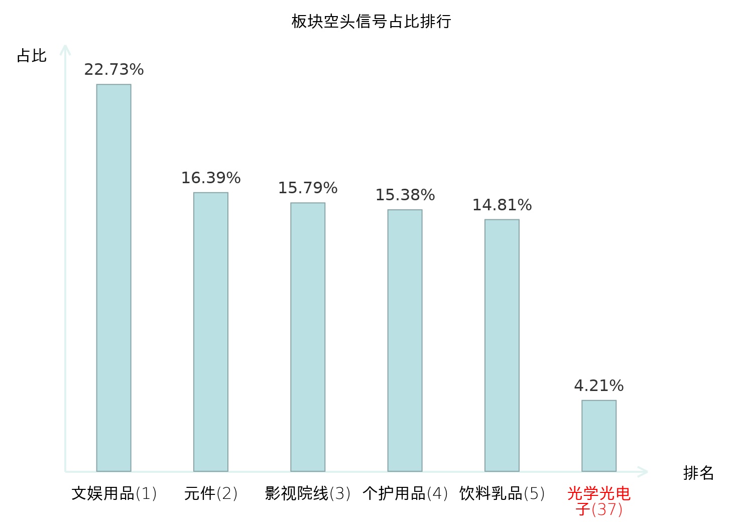 全市场所有行业板块中主力空头信号占比排名中,文娱用品板块位居第一。元件板块名次提升最快,较昨日上升128位。
