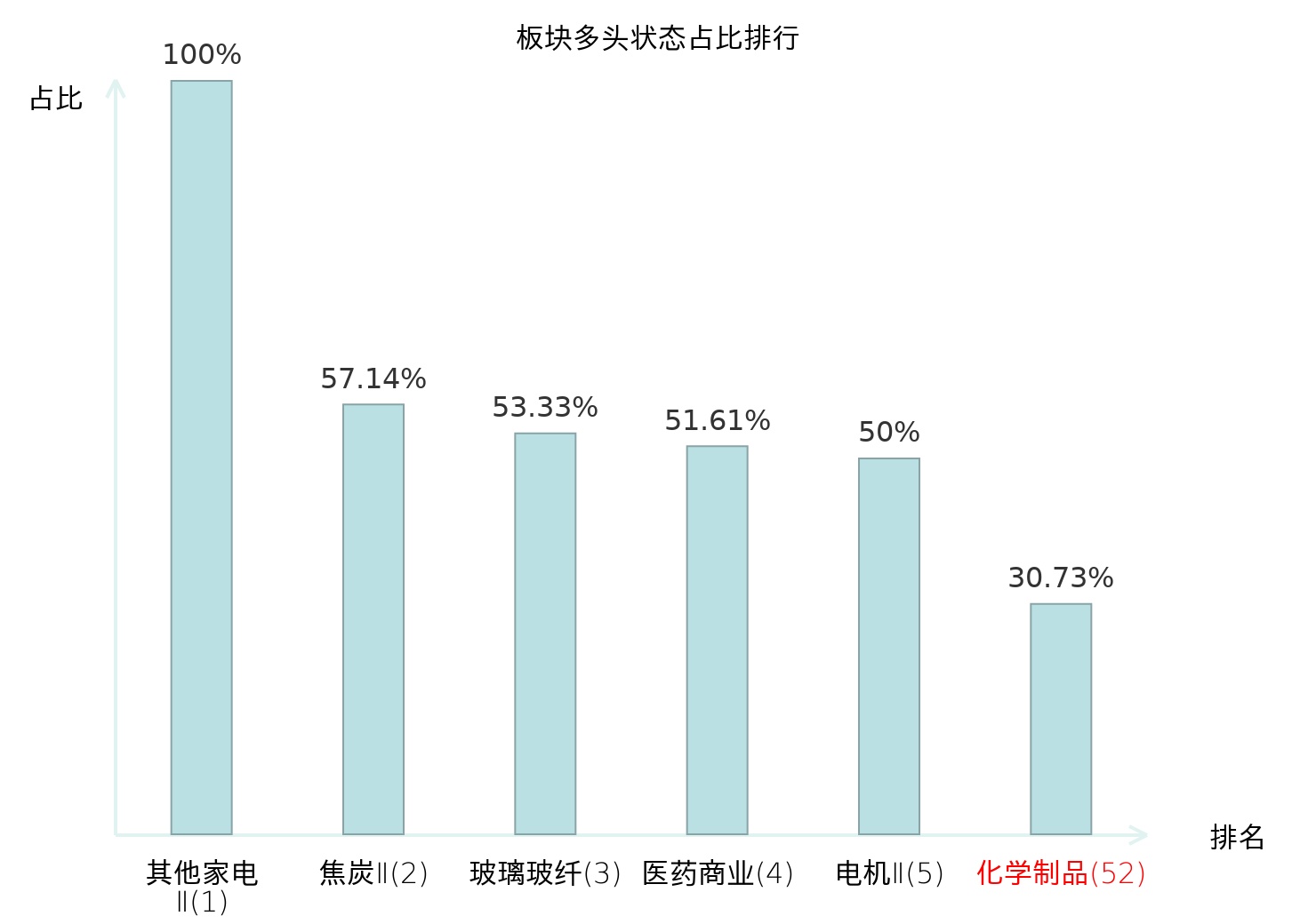从主力宝信号数据分析,七彩化学所属的化学制品板块中,共有55只股票处于主力多头状态,主力多头状态占比在全行业中排名第52位,较昨日下降10位。较高的排名表明主力对于该板块整体看多意愿较强,而此次排名的下降可能反映了主力对该板块态度的一些调整。全市场所有行业板块中,其他家电Ⅱ板块的主力多头状态占比最高,位居第一。白色家电板块名次提升最快,较昨日上升67位。这些变动揭示了不同行业间主力资金偏好的变化,为投资者提供了关于市场情绪和潜在投资机会的重要线索。