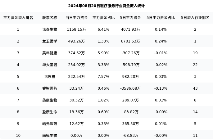 从主力资金流向来看,医疗服务行业今日主力资金流入11.00亿,在所有申万二级行业中排名:89/131。