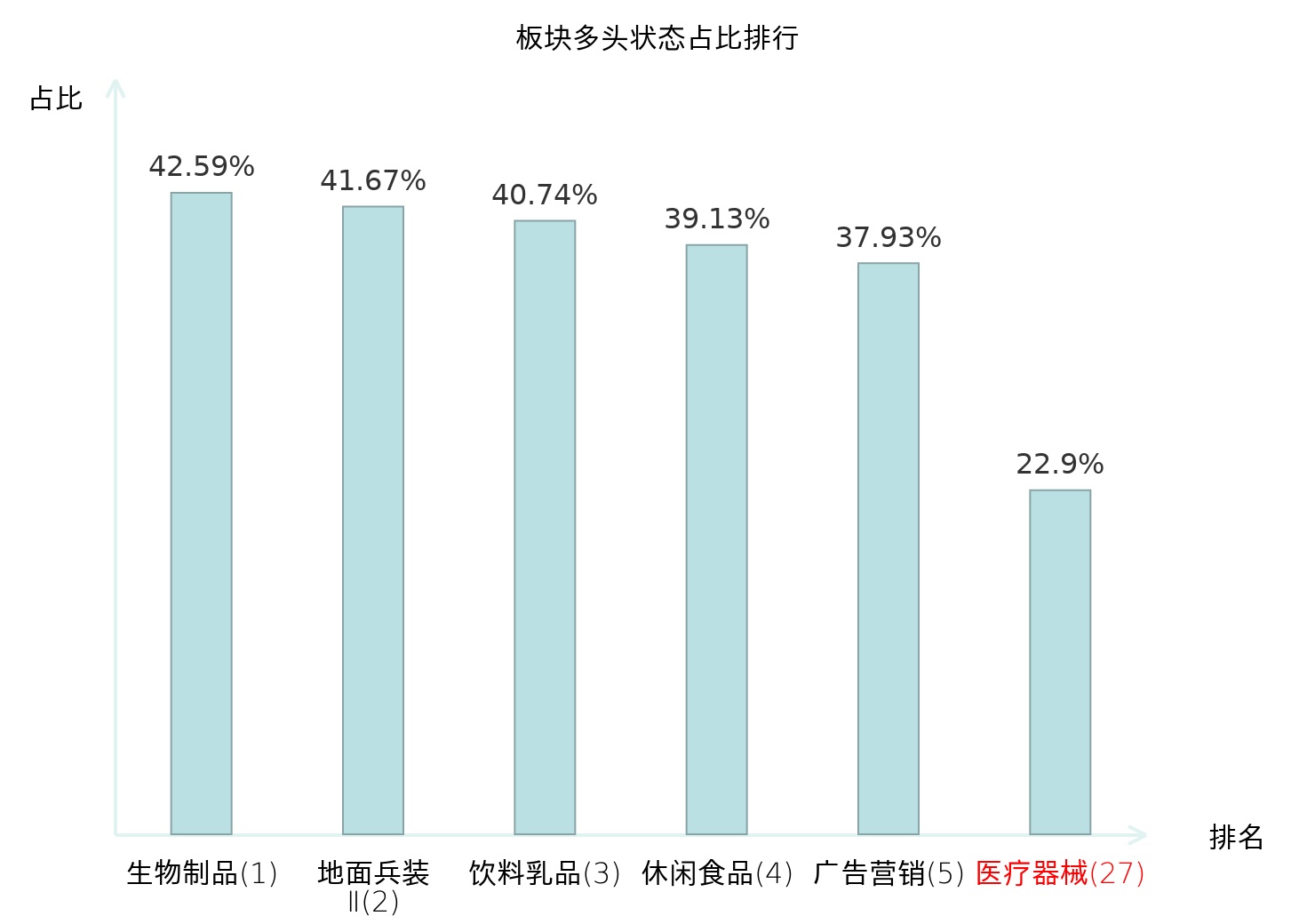 全市场所有行业板块中主力多头状态占比排名中,生物制品板块位居第一。黑色家电板块名次提升最快,较昨日上升65位。