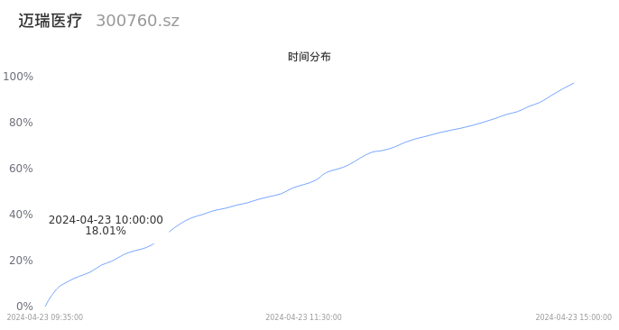 300760迈瑞医疗2024年04月23日成交4.46万手,成交金额12.65亿元,相较昨日缩量1215手,换手率0.37%,成交清淡。
