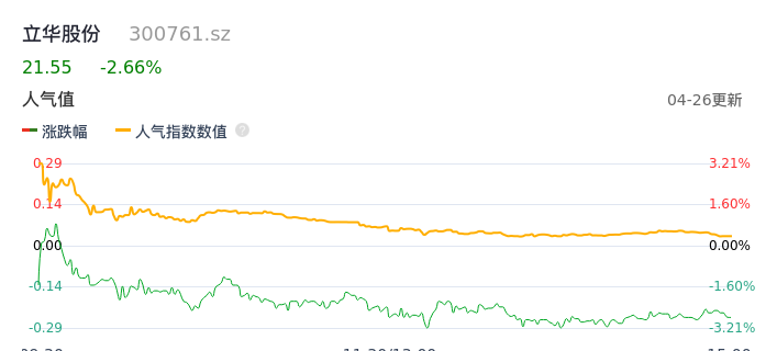 04月26日,立华股份收报21.55,股价涨幅-2.66%,成交金额1.23亿元,换手率0.94%。