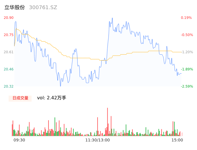 04月16日,立华股份收报20.44,股价涨幅-2.01%,成交金额4993.09万元,换手率0.40%。