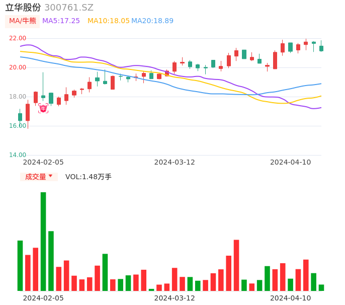 04月10日,立华股份收报21.13,股价涨幅-2.36%,成交金额3167.67万元,换手率0.25%。