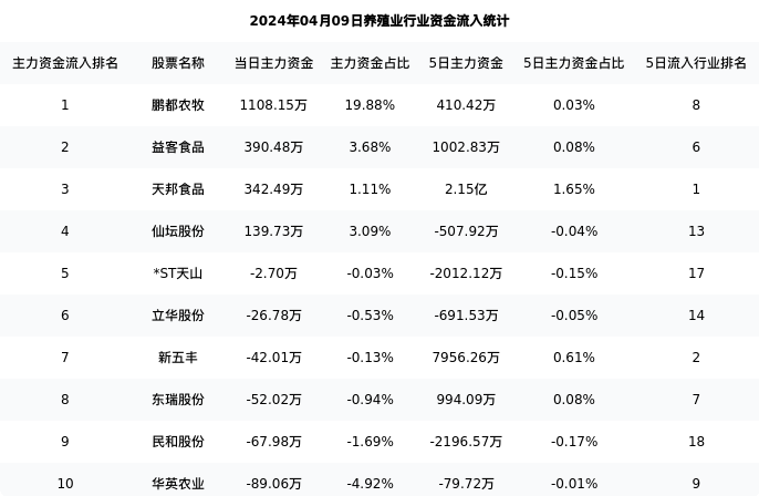 从主力资金流向来看,养殖业行业今日主力资金流入10.35亿元,在所有申万二级行业中排名:113/131。
