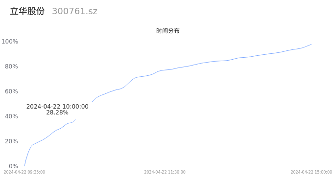 根据成交分布分析,该股票当天放量成交,成交清淡。时间上看,早盘前半小时成交量占据当天总成交量的28.28%;价格上看,成交呈现中间峰。成交分布分析主要研究股票成交的分布特性,不具有预测功能,请知悉。