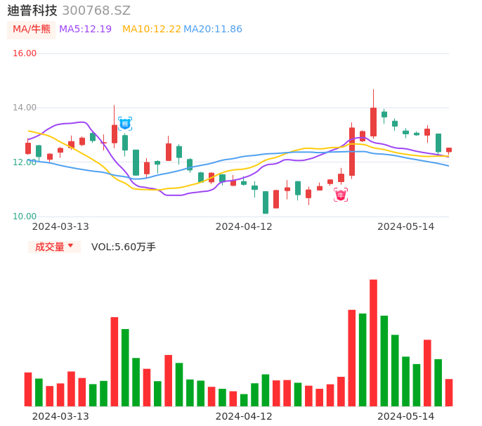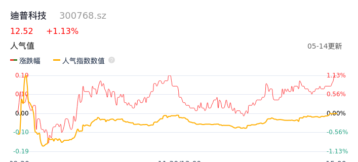 05月14日,迪普科技收报12.52,股价涨幅1.13%,成交金额6955.53万元,换手率1.33%。
