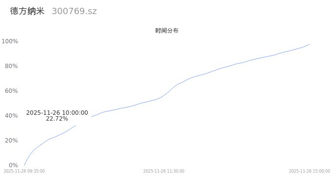 300769德方纳米2025年11月26日成交23.17万手,成交金额10.87亿,相较昨日缩量2.30万手,换手率9.20%,成交清淡。