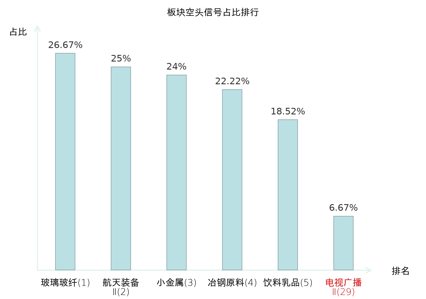 全市场所有行业板块中主力空头信号占比排名中,玻璃玻纤板块位居第一。普钢板块名次提升最快,较昨日上升113位。