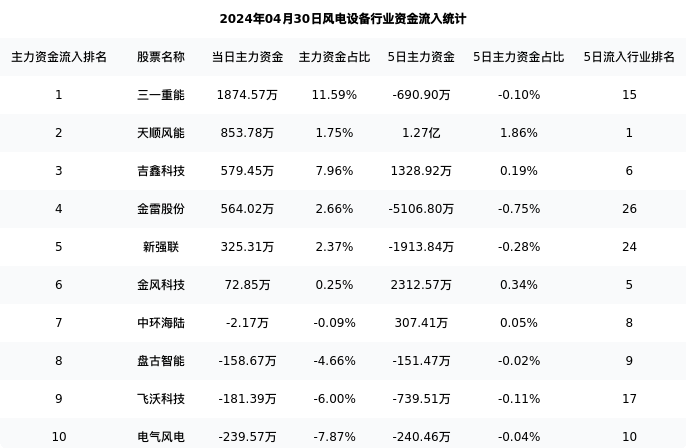 从主力资金流向来看,风电设备行业今日主力资金流入11.67亿元,在所有申万二级行业中排名:116/131。