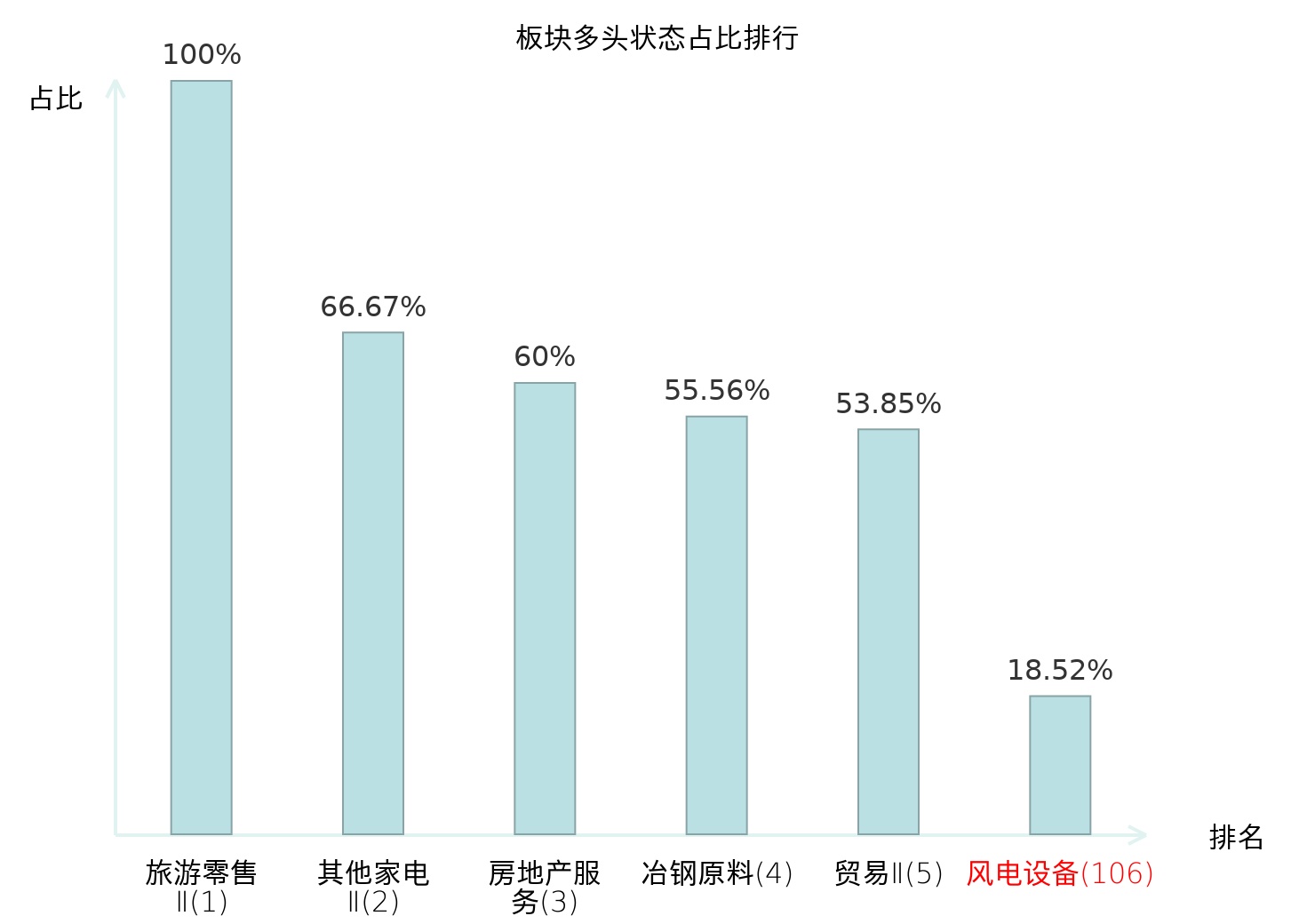 全市场所有行业板块中主力多头状态占比排名中,旅游零售Ⅱ板块位居第一。保险Ⅱ板块名次提升最快,较昨日上升65位。