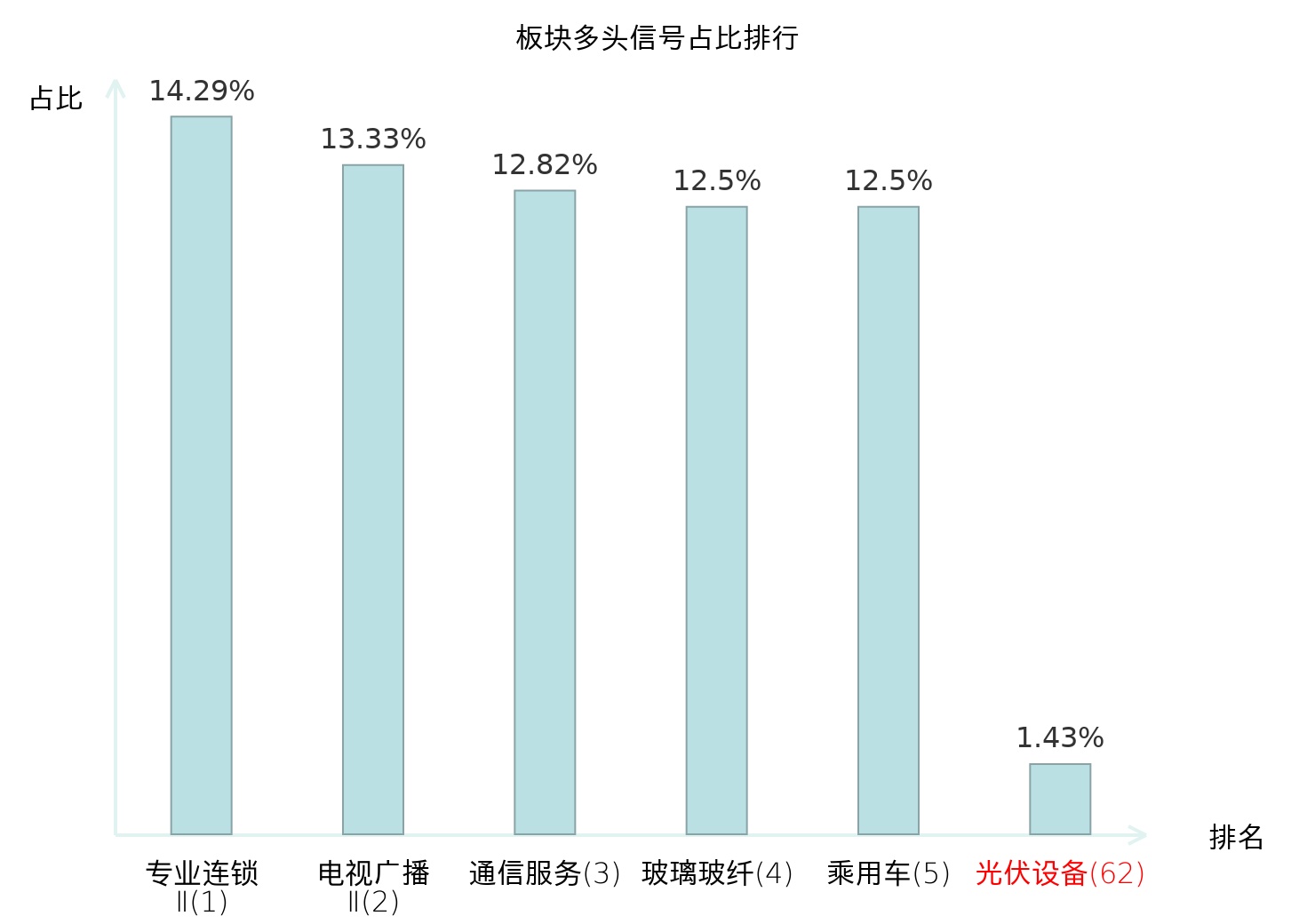 全市场所有行业板块中主力多头信号占比排名中,专业连锁Ⅱ板块位居第一。专业连锁Ⅱ板块名次提升最快,较昨日上升124位。