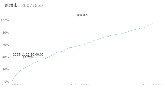 300778新城市2025年11月25日成交3.16万手,成交金额4158.64万,相较昨日缩量2.14万手,换手率1.55%,成交清淡。