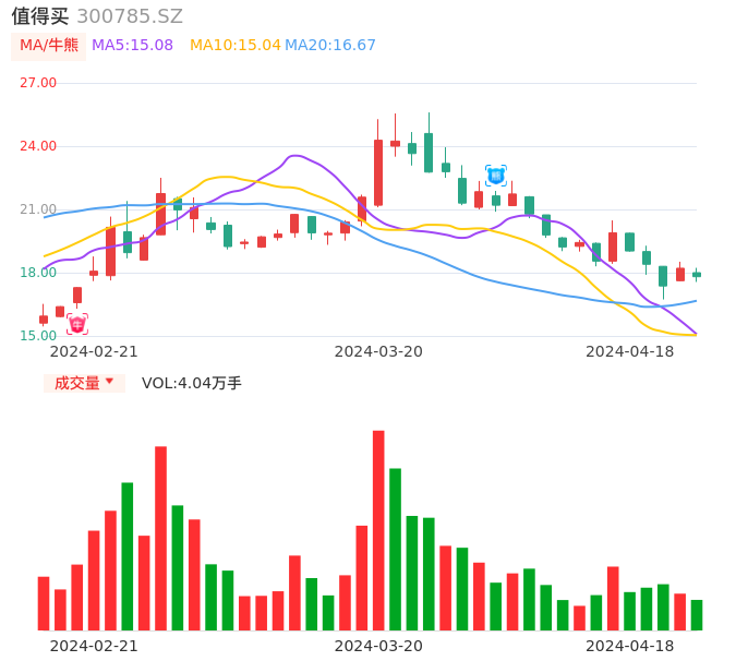 04月18日,值得买收报17.81,股价涨幅-2.20%,成交金额7243.03万元,换手率3.55%。