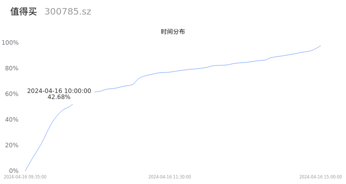 根据成交分布分析,该股票当天放量成交,成交清淡。时间上看,早盘前半小时成交量占据当天总成交量的42.68%;价格上看,成交呈现中间峰。成交分布分析主要研究股票成交的分布特性,不具有预测功能,请知悉。