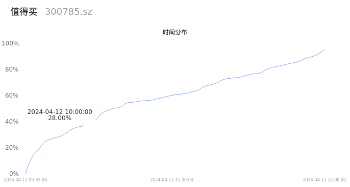 根据成交分布分析,该股票当天缩量成交,成交清淡。时间上看,早盘前半小时成交量占据当天总成交量的28.0%;价格上看,成交呈现中间峰。成交分布分析主要研究股票成交的分布特性,不具有预测功能,请知悉。