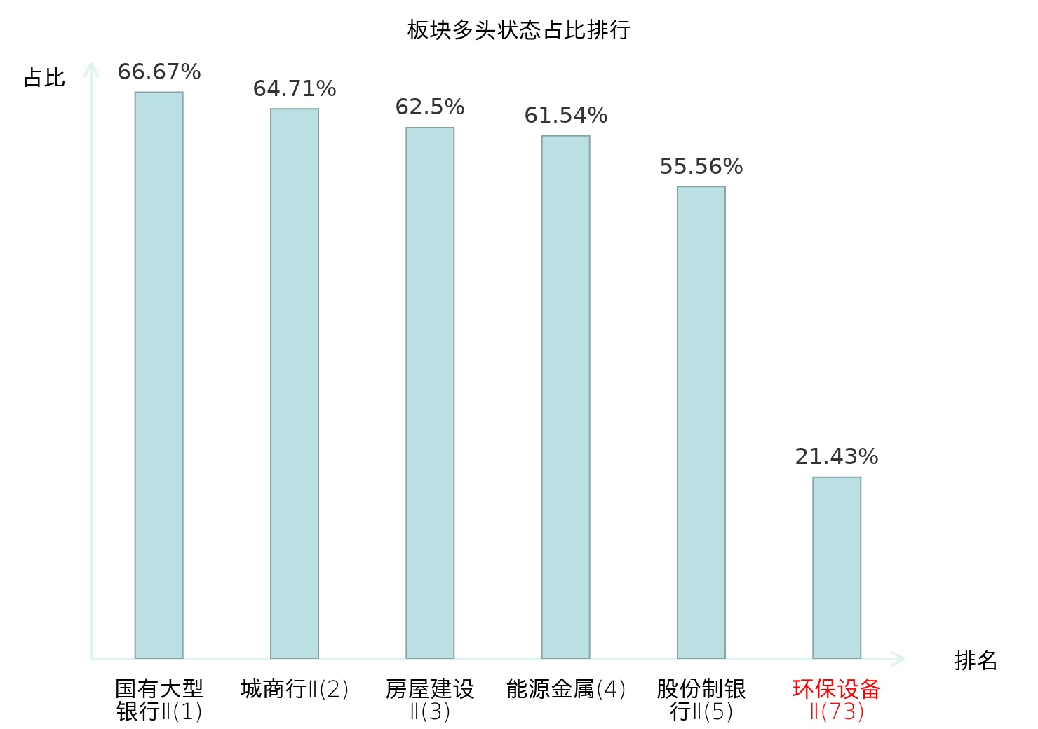 全市场所有行业板块中主力多头状态占比排名中,国有大型银行Ⅱ板块位居第一。普钢板块名次提升最快,较昨日上升65位。