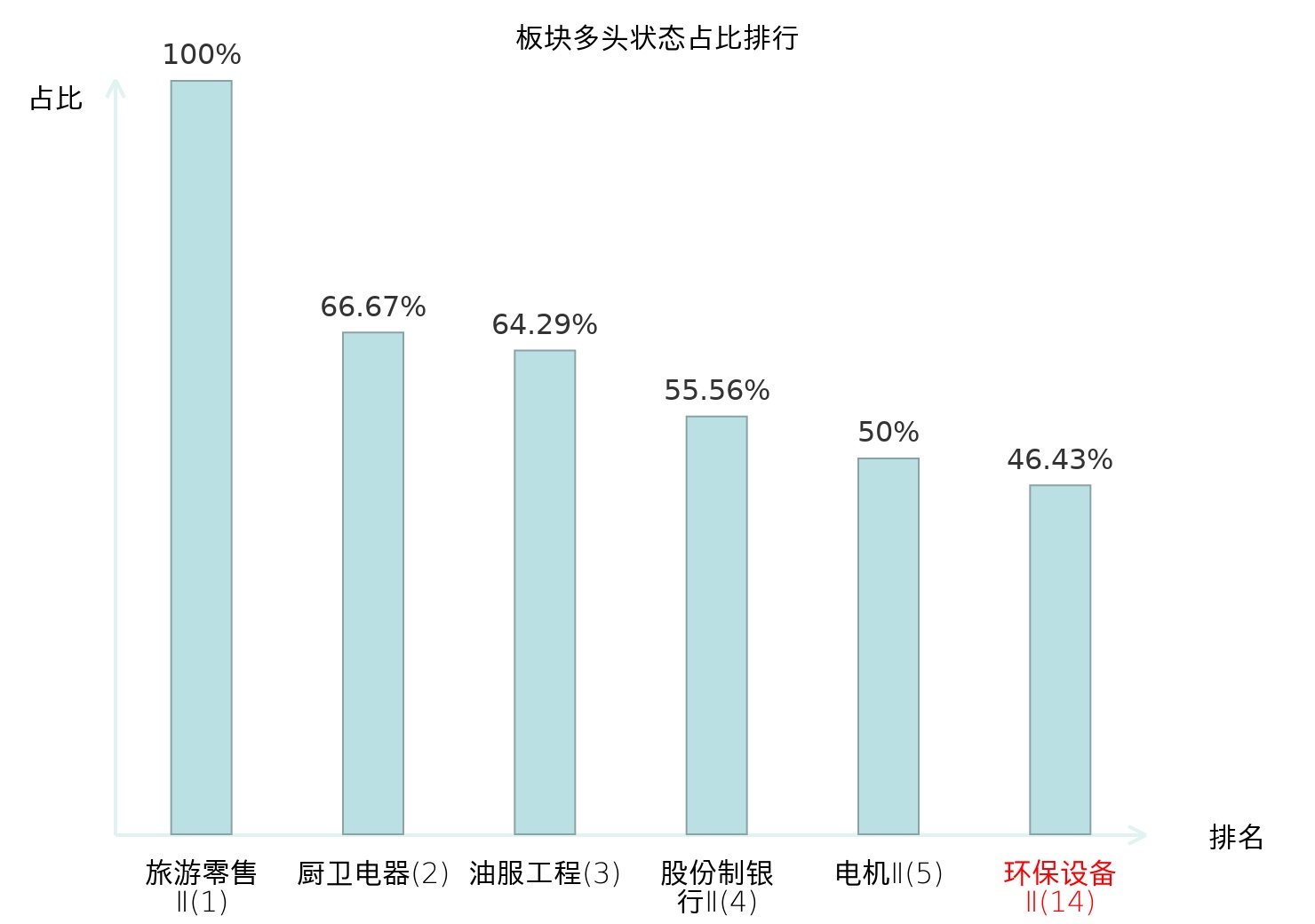 全市场所有行业板块中主力多头状态占比排名中,旅游零售Ⅱ板块位居第一。航海装备Ⅱ板块名次提升最快,较昨日上升78位。