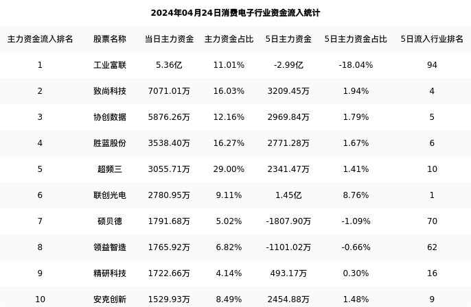 从主力资金流向来看,消费电子行业今日主力资金流入75.34亿元,在所有申万二级行业中排名:45/131。