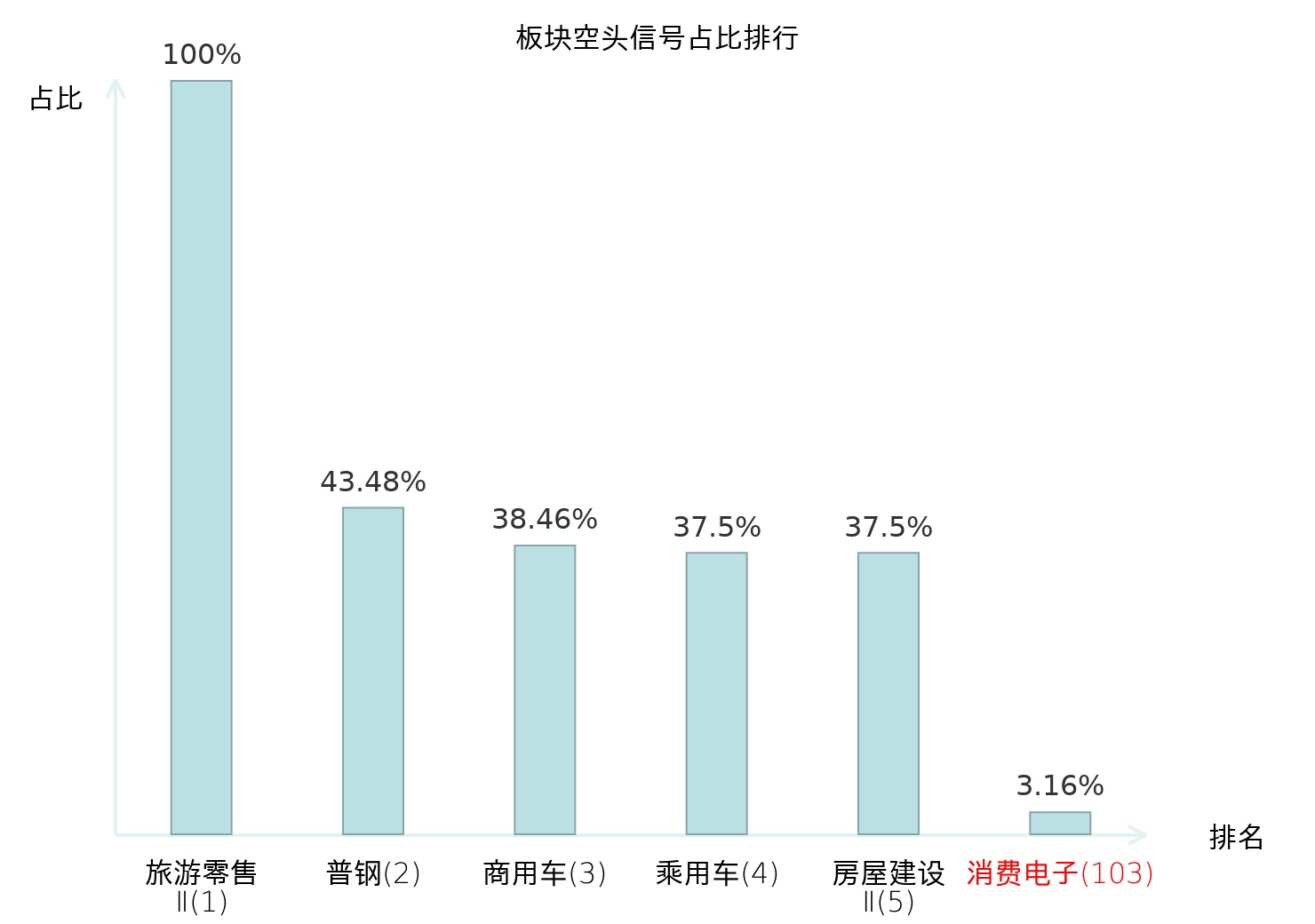 全市场所有行业板块中主力空头信号占比排名中,旅游零售Ⅱ板块位居第一。普钢板块名次提升最快,较昨日上升114位。